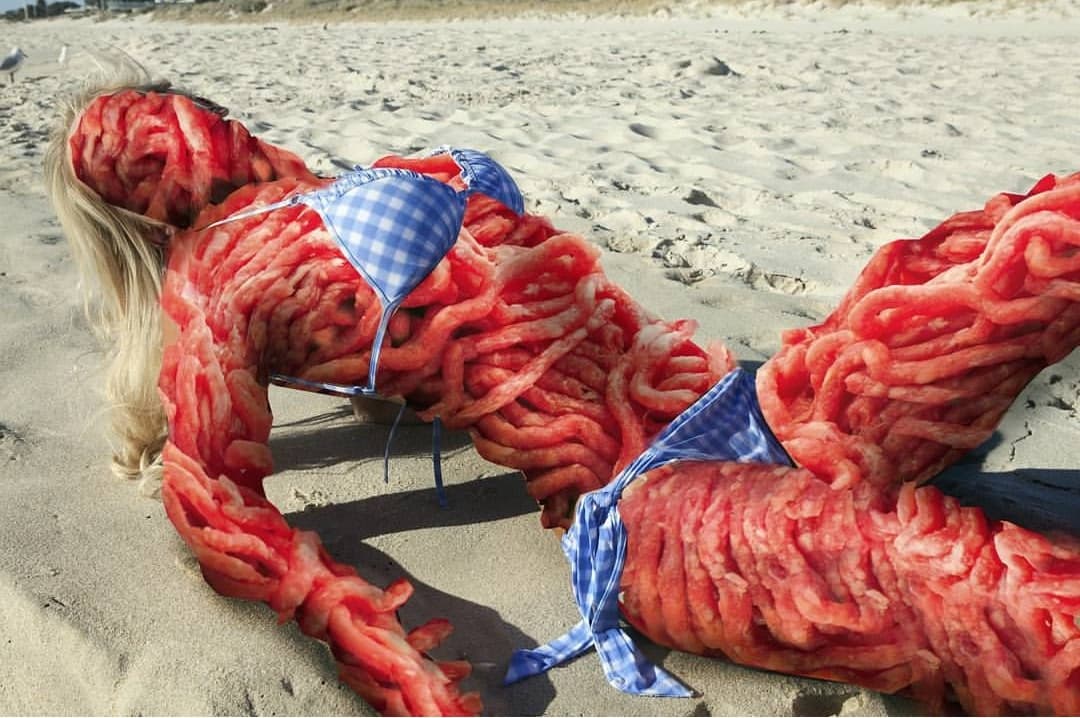 Comparer les femmes aux autres animaux et inversement en des termes péjoratifs est banalisé et donc acceptable. Les femmes battues et/ou violées se comparent très souvent à des pièces de viande. Car il est normal de voir le corps des femmes objectifié en viande, que ce soit derrière un écran, derrière une vitrine ou sur un trottoir (la faute à la pornoprostitution). Et sachant que nous occultons totalement le fait que les autres animaux sont des individuEs pour y voir uniquement un morceau de viande, le même procédé s’applique donc aux femmes.