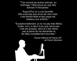 Quand à Ovidie…son aliénation est profonde… Elle creuse sa tombe croyant en soulever le couvercle, le tout guidé par une volonté d’existence médiatique qui viendra lui dire qu’elle a de la valeur. Le patriarcat valorise celle qui montre publiquement que les femmes n’ont pas de valeur. C’est une collabo égocentrique qui ne voit pas que le porno est barbarie perverse, viol perpétuel, qui humilie et torture des femmes réelles pour faire discours de rage contre les femmes. Le propos misogyne qui érotise le viol est imprégné immédiatement par n’importe quel spectateur de cette guerre contre les femmes, puisque le plaisir orgasmique de la masturbation sera associé à la scène d’oppression… Le porno est l’arme contemporaine de destruction massive des femmes et des enfants.