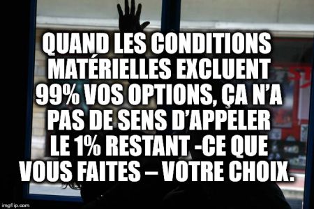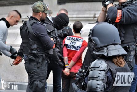 Un combat d’abolition a toujours à faire avec l’exécutif répressif puisqu’ils ont légalisé l’ illégitime. La case prison ? Même pas peur ! Engorger vos murs de violence sera une stratégie . Vous judiciarisez le politique, nous ferons imploser vos geôles. Par milliers. Car la pérennité de l’élevage est bien plus dangereuse que vos incarcérations .
