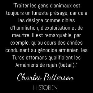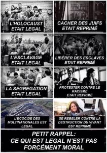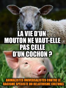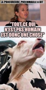 L’effroyable condition animale n’est pas une question. L’élevage n’est pas un débat, c’est un holocauste. La barbarie n’a pas à être étudiée mais interrompue. La violence ne se critique pas, elle se combat. Ce n’est pas la controverse qui fait étape vers une résolution morale et un changement effectif. Dans le cas du totalitarisme libéral, c’est le « jeu démocratique » qui est instrumentalisé et la démocrature assure la permanence des violences. Et dès que les gestes pointent enfin, le débat s’empresse de devenir « Grand Débat ». Parce que la parole ne vaut plus rien et qu’il faut maintenir le fascisme en ré insufflant du discours là où les corps indignés étaient parvenus au passage à l’acte . Tout est un déclaratif sans valeur et leurs GESTES FONT AUTRE CHOSE ! Débattre devient alors irresponsable, obscène, criminel, quand au même moment, les victimes poussent un dernier souffle. Le vampire libéral se repait des mots de la résistance pour gonfler ses écrans d’inoffensivités. Les cris des indignés font fumée camouflant les violences qu’ils expriment. Aussi, quand une procureure de la République française énonce « Tout ce qui n’est pas humain est une chose » et que l’assistance du Tribunal reste muette, immobile, docile, au nom des conventions mondaines d’une République fossile, alors l’assistance devient complice de la fin du monde.