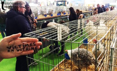 Le Salon de l’agriTORTURE sert de vitrine à la propagande pro-esclavage.