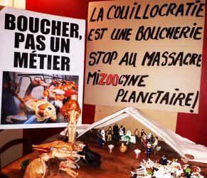 Ces violences existent depuis longtemps mais elles sont exponentielles depuis plusieurs décennies allant de pair avec le capitalisme débridé. Si certains droits ont été acquis pour les femmes occidentales il n’en reste pas moins que l’appauvrissement et la précarité touchent majoritairement les femmes seules avec enfants. Depuis #MeToo une légère vague de libération de la parole des femmes voit le jour mais rien de concret n’a changé pour nouEs encore. Et pour ce qui est des autres animaux, qui n’ont pas la parole, leurs violences sont invisibilisées, minimisées par les propagandes publicitaires lobbyistes des multinationales du zoolocauste. Sur l’hôtel des sacrifices du patriarcat gisent les femmes, les enfants et les animaux. La planète se meurt, l’industrie de la viande pollue plus que le pétrole, les hommes ont fait de ce monde un mouroir. Le patriarcat a fait de nouEs des avalées avaleuses. Il est urgent que les femmes reprennent du pouvoir et sauvent ce qu’il est encore temps de sauver. Le combat va être dur, les hommes sont des morpions du pouvoir, 99% du patrimoine mondial est détenu par eux, mais quand on a plus rien, quand on nous a vidé, volé, violé, dépossédé de tout il nous reste plus que la rage de justice pour survivre. Les femellistes sont des résistantes à toute viandalisation des corps, espeçage, sexage, sexclavage, nous luttons contre tous les fascismes qu’ils soient humaniste, spéciste, religieux, misogyne, raciste, capitaliste etc. pour remettre les animaux, que nous sommes toutes et tous, au cœur de l’écosystème planétaire. Nous sommes la nature qui se défend. Stop à la pandémie patriarcarniste et patriarcapitaliste écocidaire, stop miZOOgynie ! Le femellisme ou l’apocalypse.