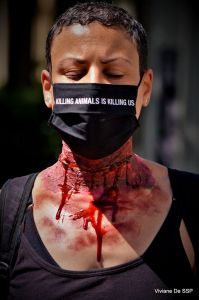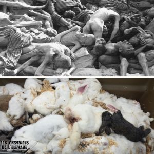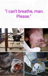 Faire face à une mort violente et prématurée est prédéterminé pour les animaux d’élevage dès leurs premiers jours de vie. Dans l’industrie des œufs, les poussins mâles – non rentables car ils ne peuvent pas pondre d’œufs et ne conviennent pas à la production de viande – sont broyés vivants peu de temps après leur éclosion. Les vaches matures, les poulets et les porcs sont mis en file d’attente pour l’abattage via des chambres à gaz, des pistolets paralysants ou l’électrocution. Au cours de leurs derniers moments de vie, ils sont obligés de sentir le sang, d’entendre les aigus et d’assister à la mort de leurs pairs. Ces animaux manifestent une nette aversion pour la souffrance et la peur de la mort par des actes de résistance émotionnelle et physique. Ils paniquent, convulsent, pleurent et crient. Tous les êtres sensibles, quelle que soit leur espèce, cherchent à éviter la douleur et à craindre la mort.