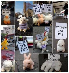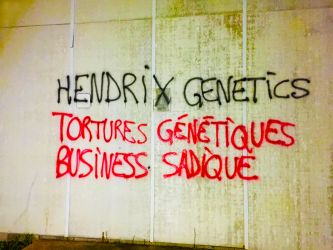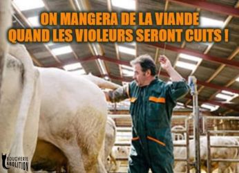 Ce sont ces richissimes criminels qui pactisent avec les éleveurs et coopératives, les tueurs des camps de la mort, les distributeurs et aussi mais surtout, tous les États du monde. Ils sont les bras tentaculaires qui vendent, sur tout le globe, le corps meurtris d’êtres séquestré·es, violé·es, torturé·es hormonalement, physiquement et psychologiquement, shooté·es aux antibios, vaccins, hormones et autres substances toxiques, mutilé·es, désenfantées, frappé·es, ligoté·es, désallaitées, assassiné·es. Ce sont eux qui créent les pandémies, l’antibiorésistance et l’effondrement environnemental planétaire. Ce sont eux et leurs multinationales qui poussent les idiots utiles au capitalisme à acheter les morceaux de corps étalés dans les rayons, avec la collaboration des Gouvernements, Parlements, et autres organisations internationales.