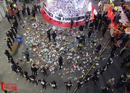L’ONU n’est pas pour la paix dans le monde, mais pour un monde qui écrase les autres animaux, qui les torture pour développer la seule chose valable dans ce monde d’hommes : le capitalisme. L’ONU est pour un monde de guerre contre la nature. Pour un monde immonde où toustes celleux qui ne sont pas humain·es sont des marchandises, des usines à produire, des profits.