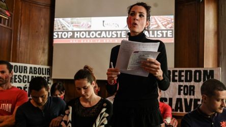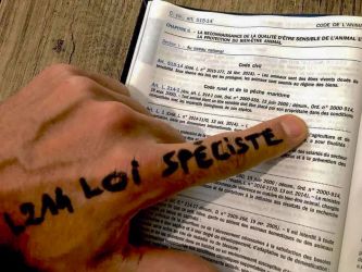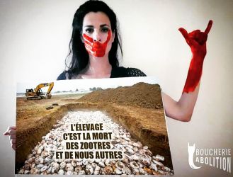 ![©PHOTOPQR/LA DEPECHE DU MIDI ; DDM THIERRY BORDAS TOULOUSE LE 23 MAI 2017 DES MILITANTES DU COLLECTF BOUCHERIE ABOLITION POSENT DEVANT LE PALAIS DE JUSTICE ET REVENDIQUENT LEUR ACTION COUP DE POING A L INRA QU ELLES ACCUSENT D EUGENISME DE SPECISME ET DE TORTURER LES ANIMAUX (MaxPPP TagID: maxnewsworldfour288425.jpg) [Photo via MaxPPP]](https://boucherie-abolition.com/wp-content/uploads/cache/2021/02/maxnewsworldfour288425_0-scaled/262227757.jpg)